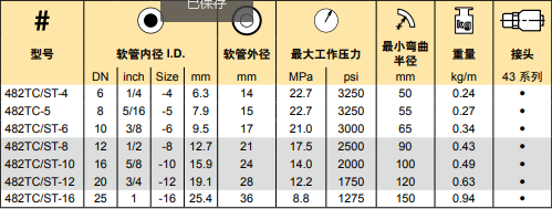 適用介質(zhì):石油基液壓油,水乙二醇,潤滑油,空氣和水。用于1.7MPa以上的空氣時,軟管需針刺。