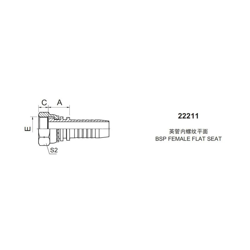 永華標(biāo)準(zhǔn)扣壓式接頭 22211英管內(nèi)螺紋 平面密封面BSP FEMALE FLAT SEAT永華集團(tuán)創(chuàng)辦于1864年,主導(dǎo)產(chǎn)品包括軟管總成、軟管接頭、過渡接頭。
