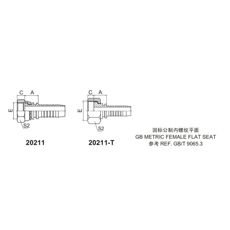 永華標(biāo)準(zhǔn)扣壓式接頭 20211和20211-T 國(guó)際公制內(nèi)螺紋 平面密封GB METRIC FEMALE FLAT SEATREF.GB/T 9065.3該接頭
